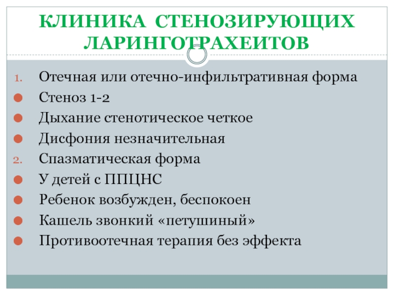 Слайд 12КЛИНИКА СТЕНОЗИРУЮЩИХ ЛАРИНГОТРАХЕИТОВ