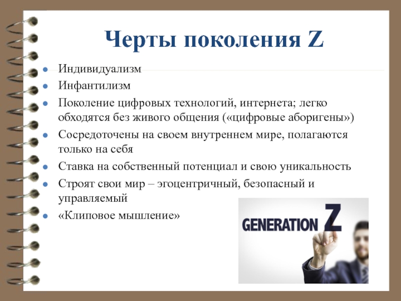 Поколение — это совокупность людей, которые рождаются каждые 20 лет: Бэби-бумеры → поколение X → поколение Y → поколение Z.