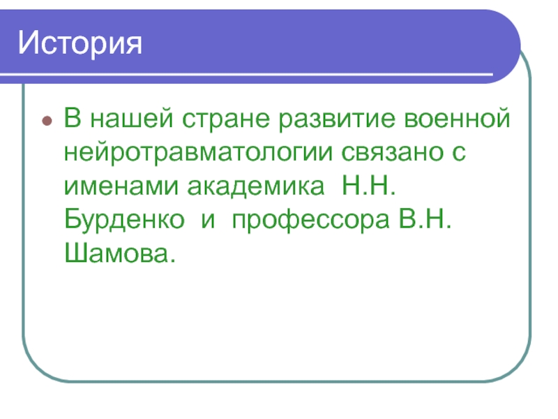 В нашей стране развитие военной нейротравматологии связано с именами академика