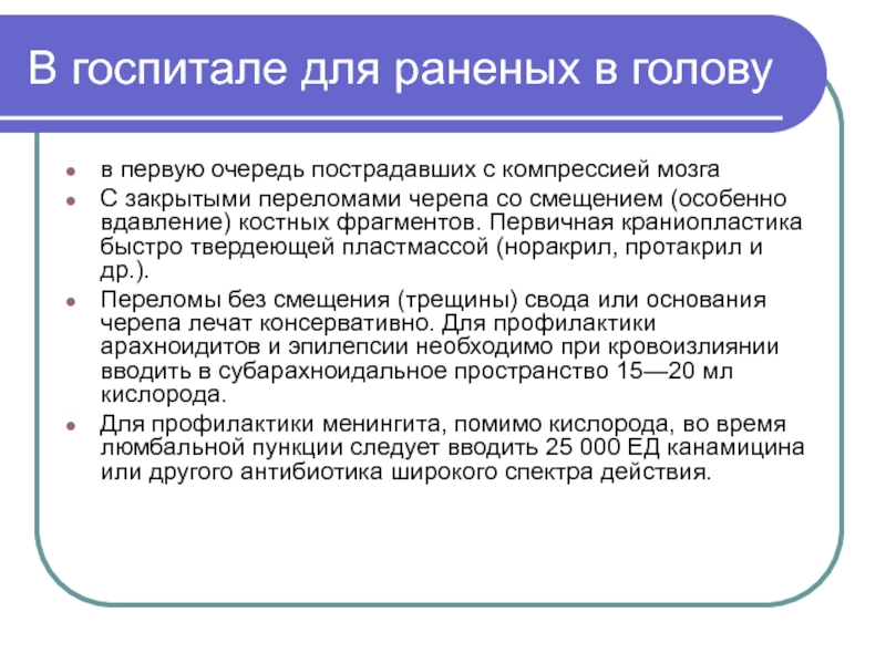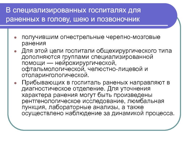 Слайд 45В специализированных госпиталях для раненных в голову, шею и позвоночник