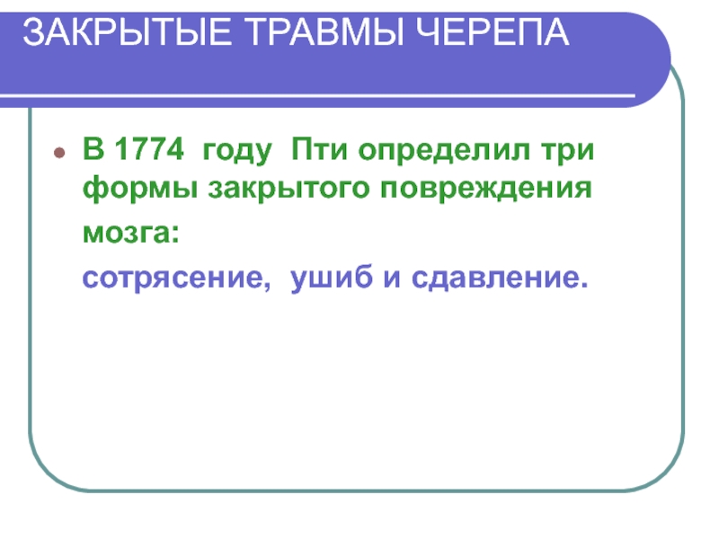 Слайд 12ЗАКРЫТЫЕ ТРАВМЫ ЧЕРЕПА
