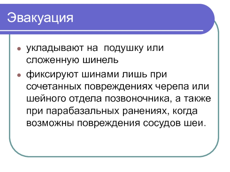 Остальные раненые (90—94% всех раненных в череп) подлежат эвакуации в госпитальную базу.