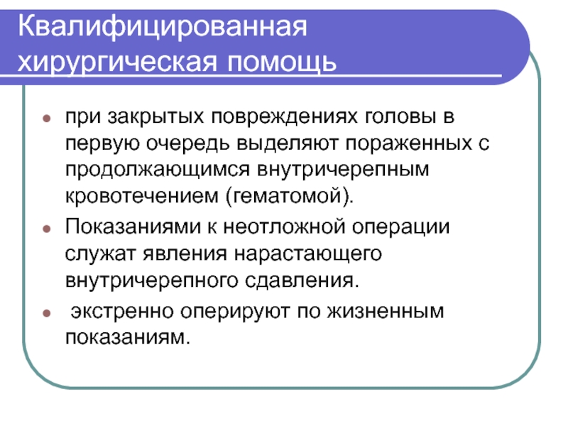 Оперативные вмешательства раненным в череп и мозг на этапе квалифицированной