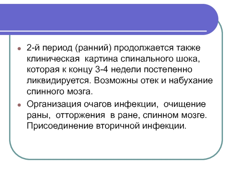3. Период ликвидации ранних осложнений (спустя 3-4 недели до 3-4 месяцев). Продуктивное воспаление и ограничение очагов инфекции. Формируются абсцессы.