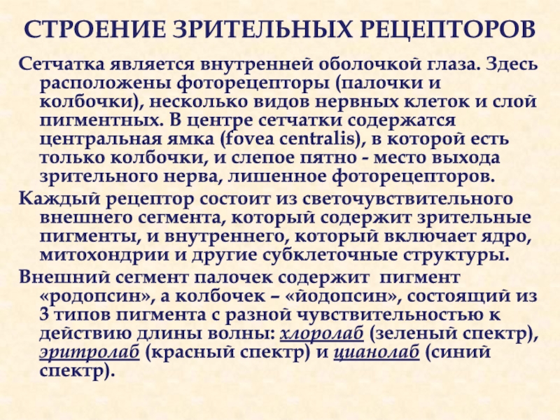 Слайд 26СТРОЕНИЕ ЗРИТЕЛЬНЫХ РЕЦЕПТОРОВ