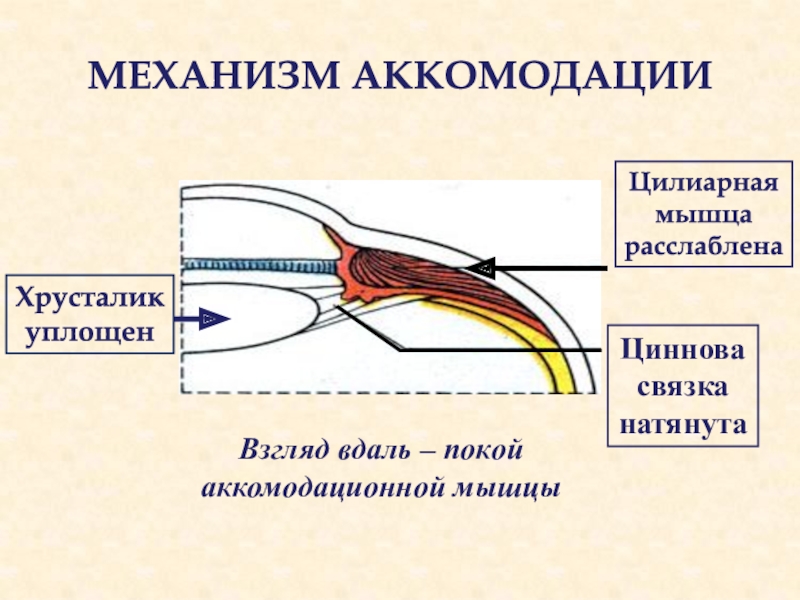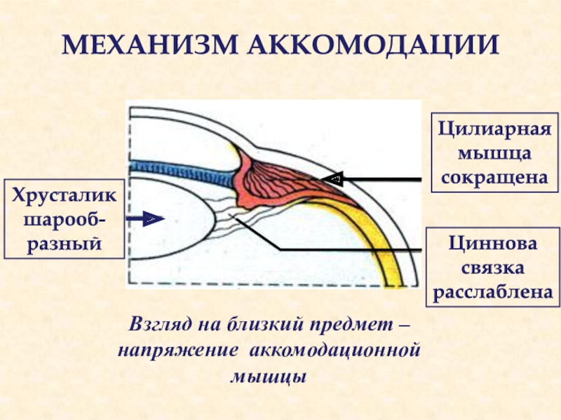 Слайд 25МЕХАНИЗМ АККОМОДАЦИИ