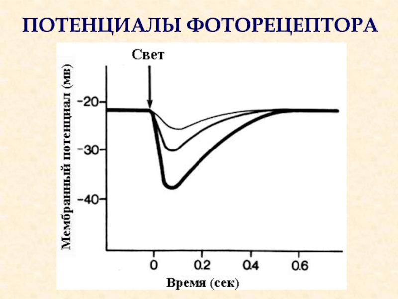 снижает вход Na+ в клетку. Возникает гиперполяризационный рецепторный потенциал.
