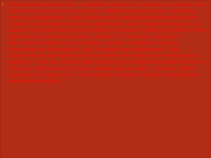 Слайд 30Тема рекламного микротекста – важнейший его элемент, поскольку от характера