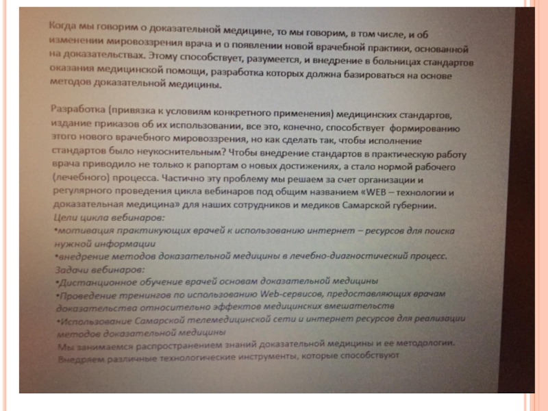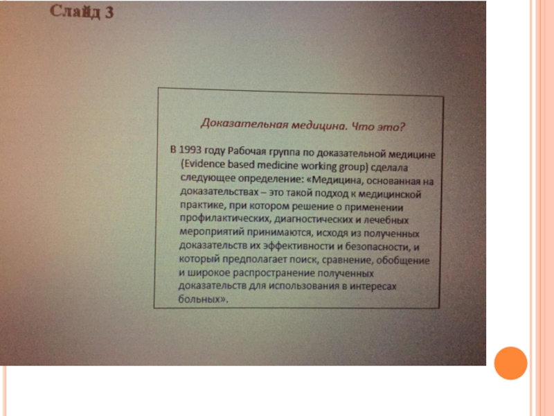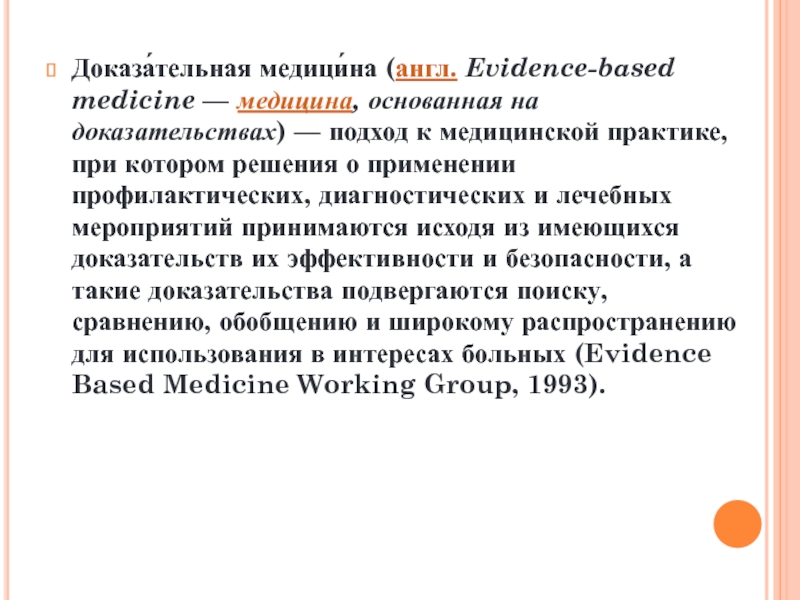 Слайд 16Доказа́тельная медици́на (англ. Evidence-based medicine — медицина, основанная на доказательствах) — подход к медицинской практике,