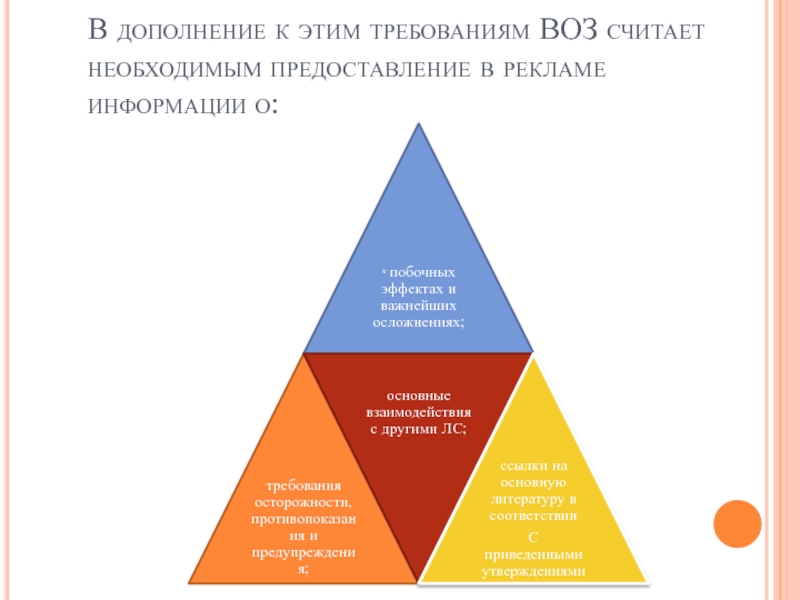 Слайд 20В дополнение к этим требованиям ВОЗ считает необходимым предоставление в