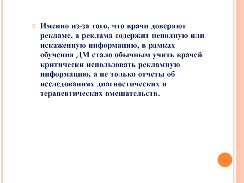 Слайд 22Именно из-за того, что врачи доверяют рекламе, а реклама содержит