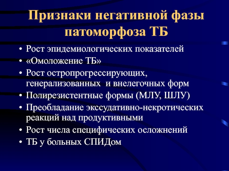 Слайд 129Признаки негативной фазы патоморфоза ТБ