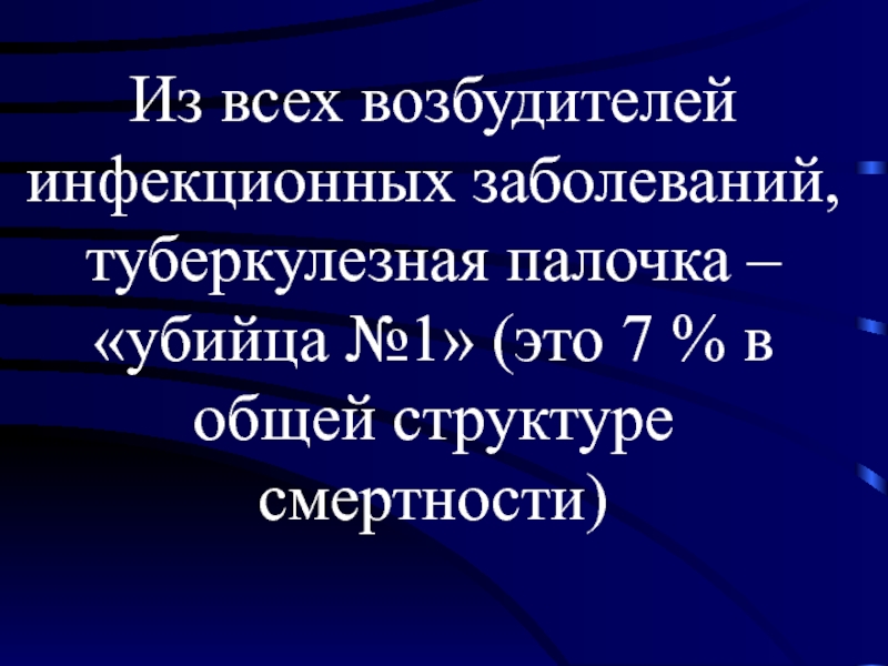 Слайд 2Из всех возбудителей инфекционных заболеваний, туберкулезная палочка – «убийца №1»