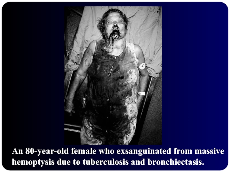 Слайд 122An 80-year-old female who exsanguinated from massive hemoptysis due to