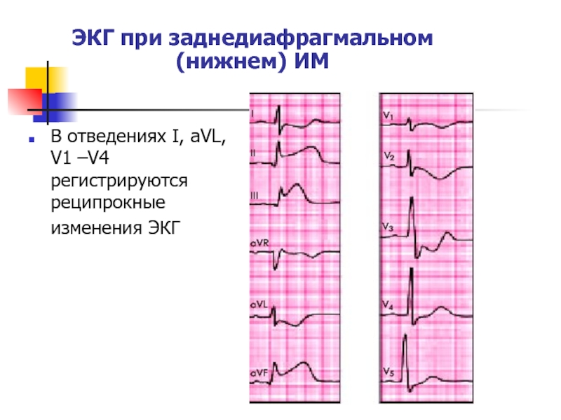 миокарде задне-верхушечно-боковой области ЛЖ (депрессия ST и «+» Т в