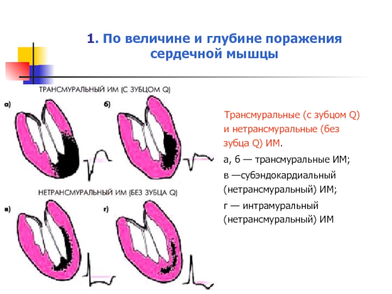 Слайд 141. По величине и глубине поражения сердечной мышцы