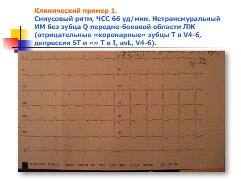Синусовый ритм, ЧСС 66 уд/мин. Нетрансмуральный ИМ без