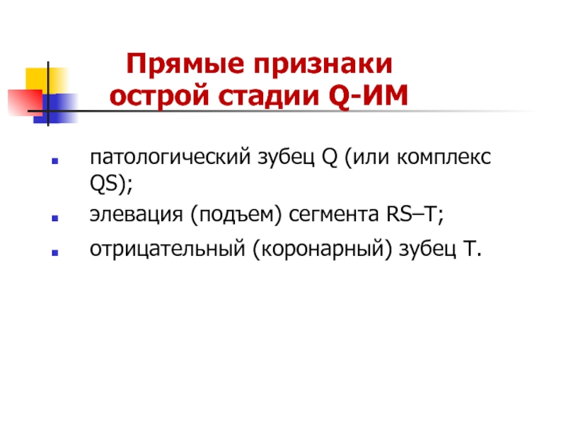 Q-ИМ левого желудочка в подостром периоде. (патологический Q,