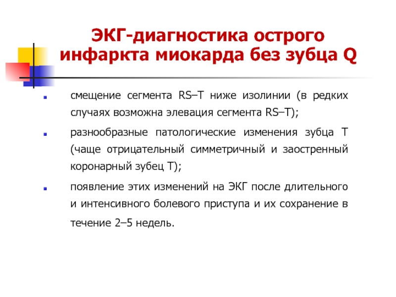 Слайд 40Изменения ЭКГ при нетрансмуральном инфаркте миокарда без зубца Q с