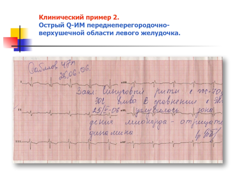 Острый Q-ИМ переднеперегородочно-верхушечной области левого желудочка.
