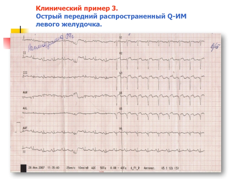 Слайд 21ЭКГ при переднеперегородочном инфаркте миокарда