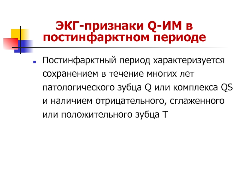 Слайд 44ЭКГ-признаки Q-ИМ в постинфарктном периоде