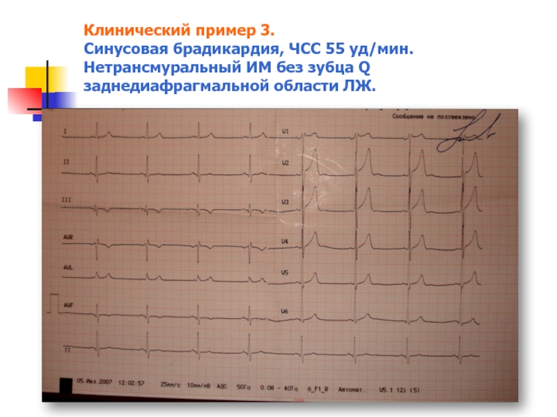 Синусовая брадикардия, ЧСС 55 уд/мин. Нетрансмуральный ИМ без