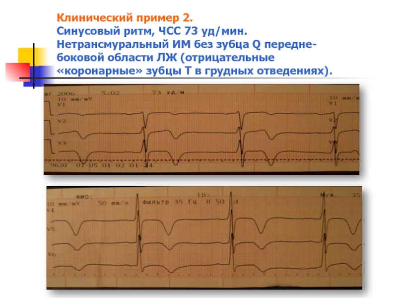 Синусовый ритм, ЧСС 73 уд/мин. Нетрансмуральный ИМ без