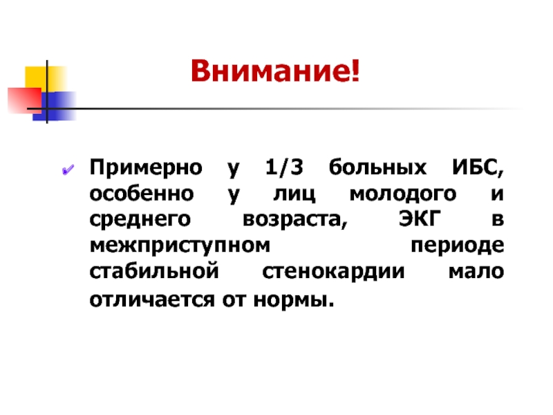 и среднего возраста, ЭКГ в межприступном периоде стабильной стенокардии мало