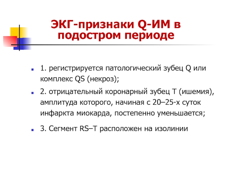 Слайд 42ЭКГ-признаки Q-ИМ в подостром периоде