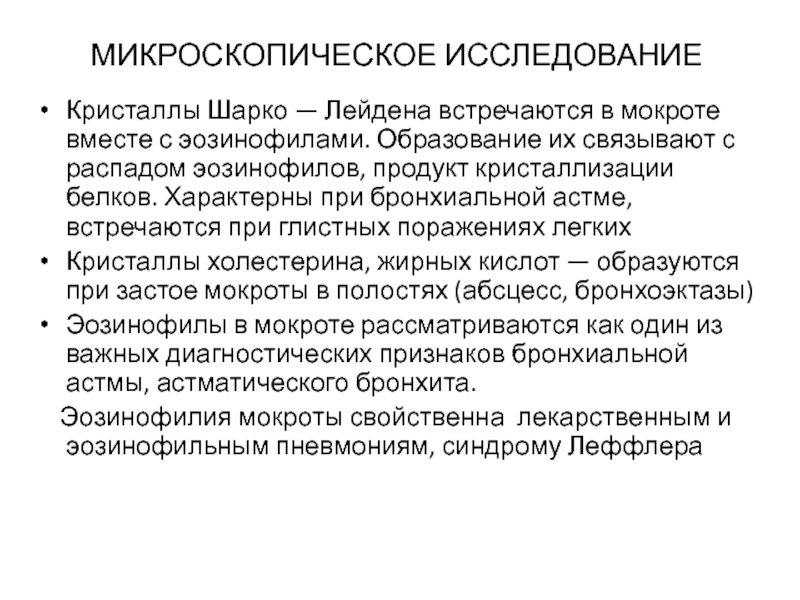 эозинофилами. Образование их связывают с распадом эозинофилов, продукт кристаллизации белков.