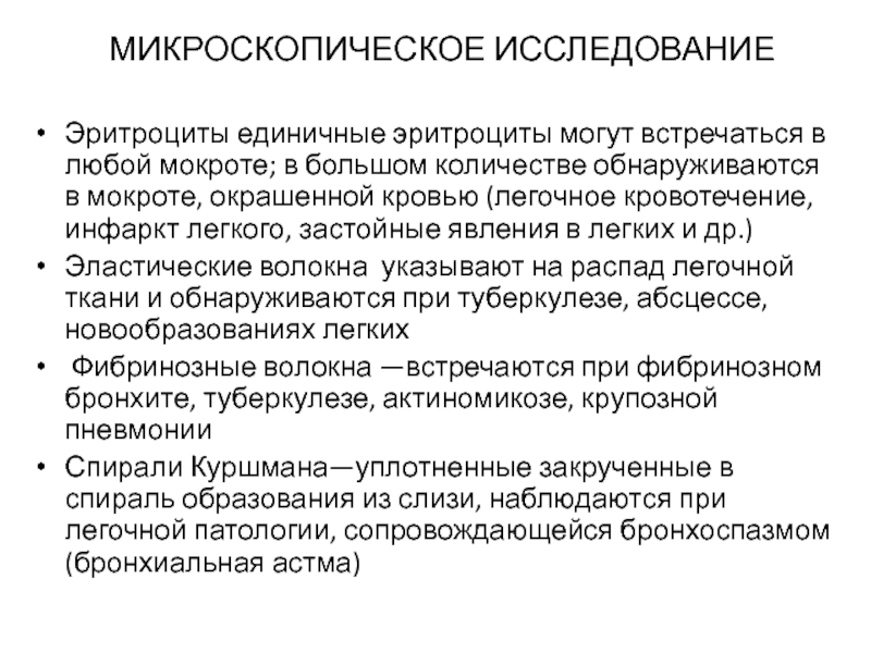 Эритроциты единичные эритроциты могут встречаться в любой мокроте; в