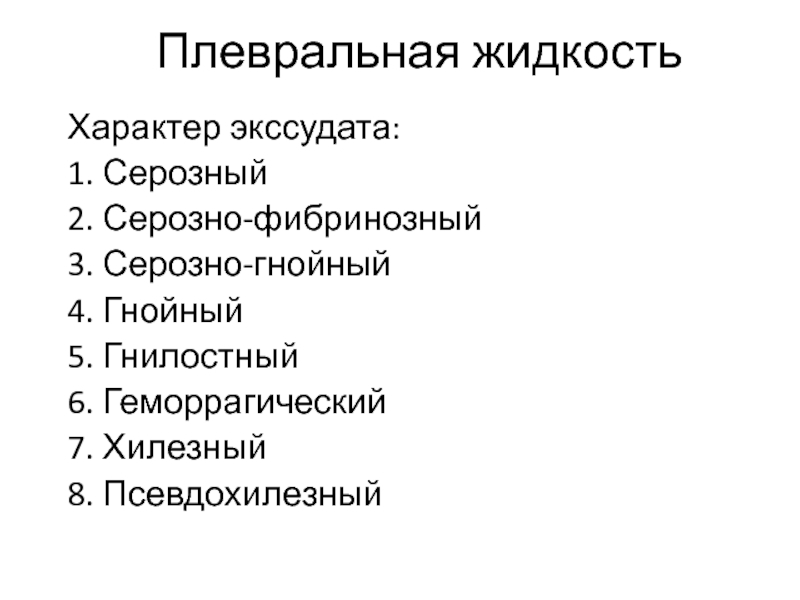 Серозное отделяемое —характерно для отека легких (левожелудочковая недостаточность, митральный стеноз, представляет собой пропотевшую в полость бронхов плазму крови.