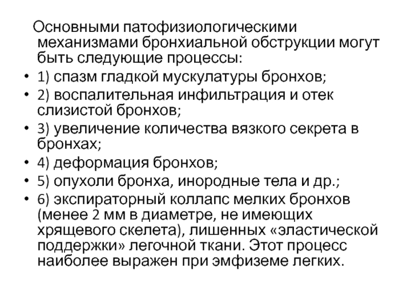 Слайд 25 Основными патофизиологическими механизмами бронхиальной обструкции могут быть следующие