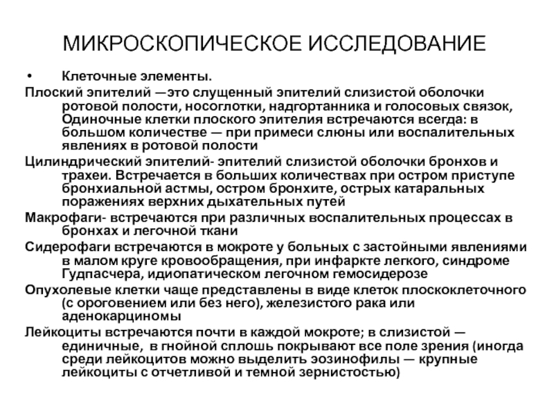 плоского эпителия встречаются всегда: в большом количестве — при примеси слюны или воспалительных явлениях в ротовой полости