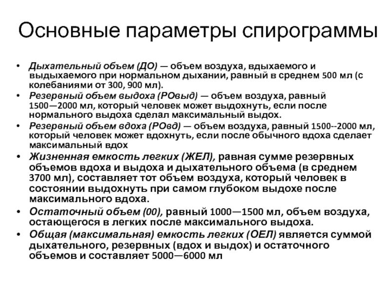 составляющих ее объемов. Поэтому обычно при спирографии, если не определен