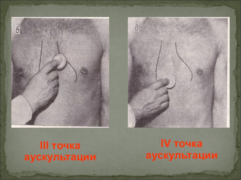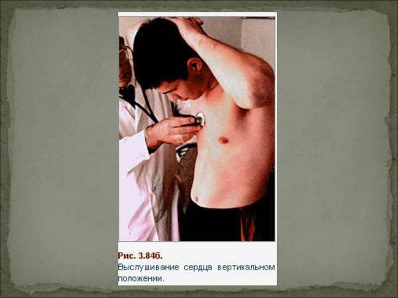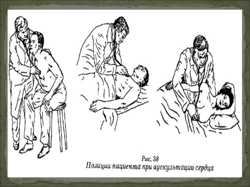 на спине, - лежа на левом бокуВыслушивать - при задержке дыхания на вдохе - при задержке дыхания на выдохе - в покое и после физической нагрузки