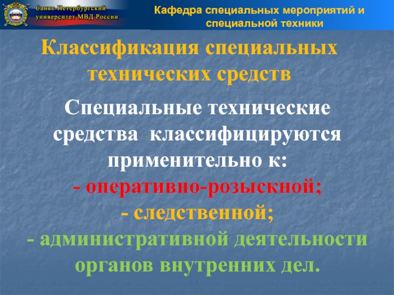 (ОВД). Классификация специальных технических средств.