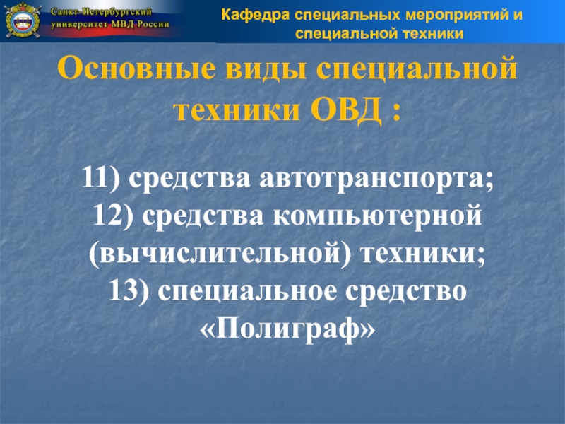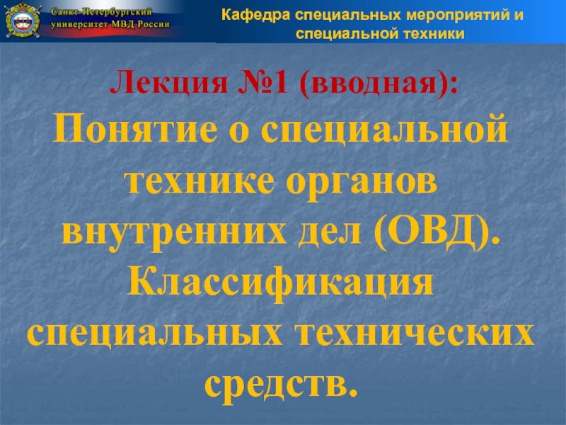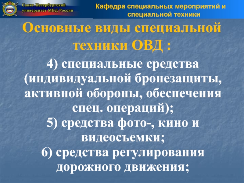 «СПЕЦИАЛЬНАЯ ТЕХНИКА ОРГАНОВ ВНУТРЕННИХ ДЕЛ Российской Федерации»