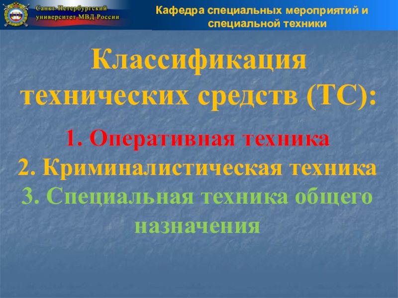 «СПЕЦИАЛЬНАЯ ТЕХНИКА ОРГАНОВ ВНУТРЕННИХ ДЕЛ Российской Федерации»