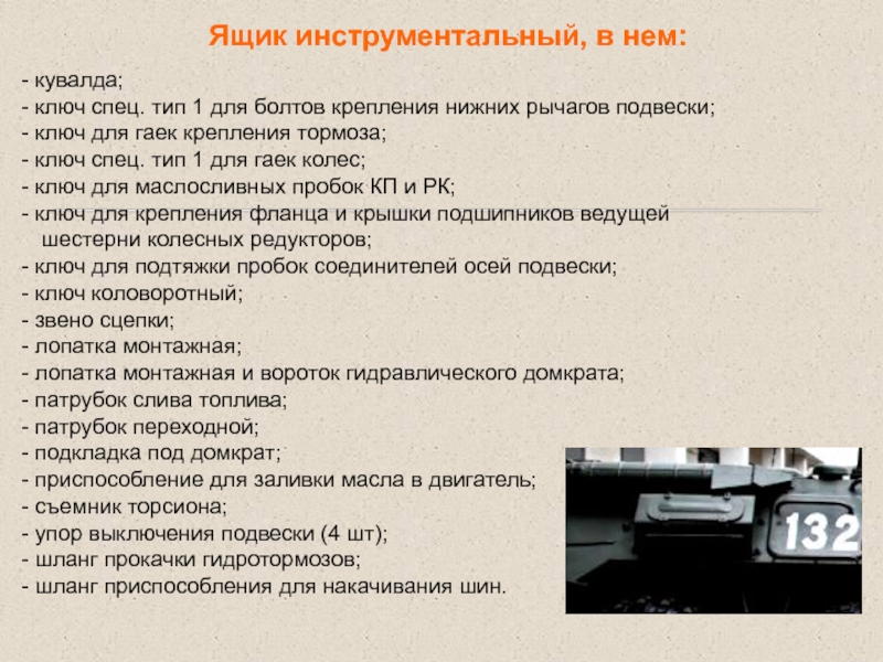 Слайд 91 Для контроля технического состояния и технического обслуживания танков