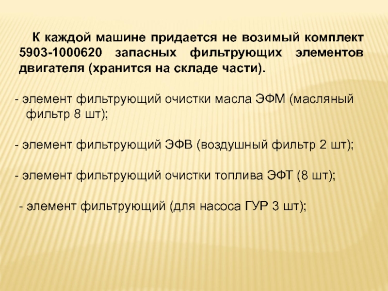 Слайд 88 К каждой машине придается не возимый комплект 5903-1000620