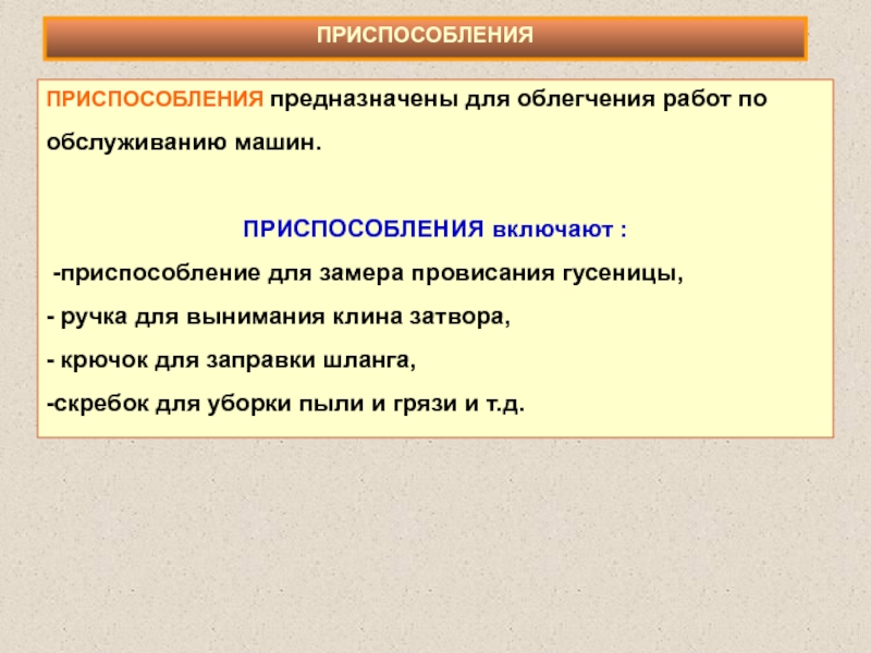 ПРИСПОСОБЛЕНИЯ предназначены для облегчения работ по обслуживанию машин.