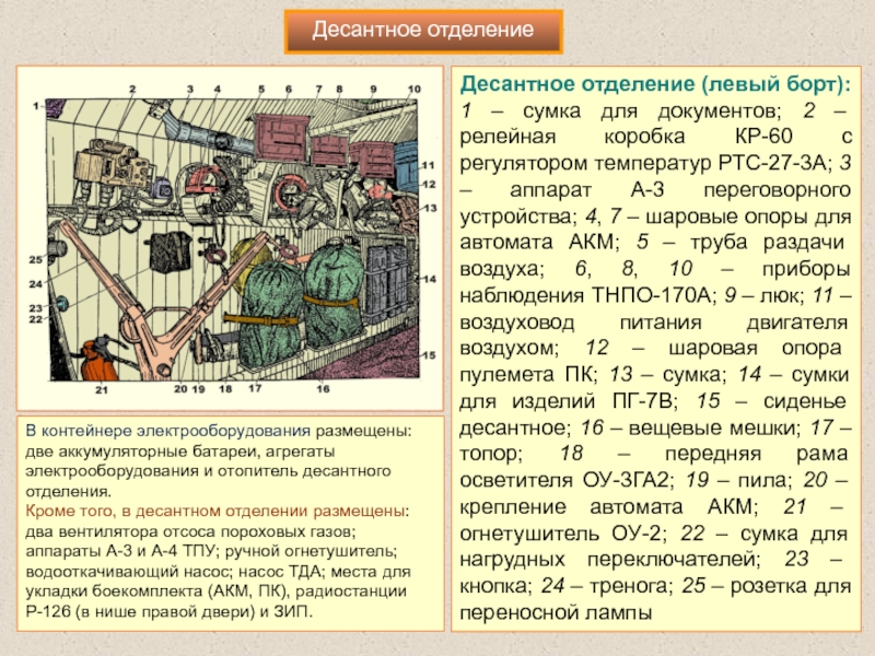 Слайд 85ЗИП уложенный в отделении силовой установки