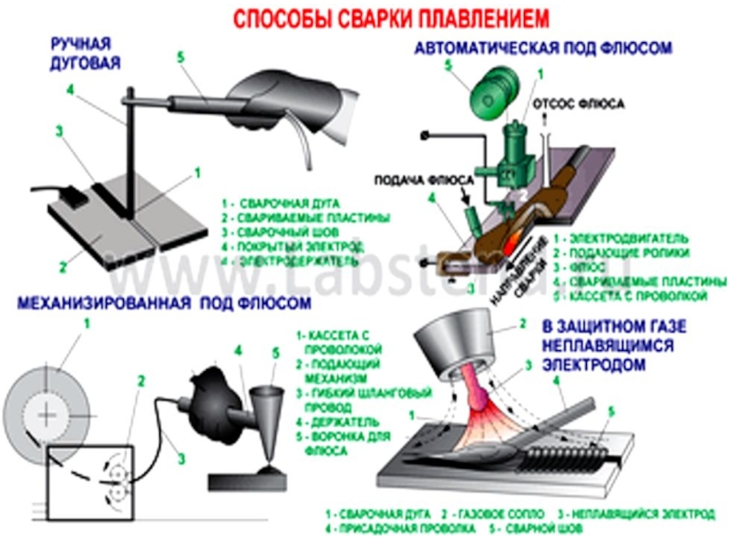 Метод сварки – это разновидность способа сварки, отличающаяся от других непринципиальными изменениями (ручная дуговая сварка обычная и с опиранием обмазки, сварка наклонным электродом, автоматическая сварка с увеличенным вылетом электрода).
