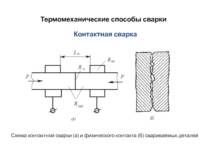 сопротивлением металл в зоне контакта разогревается до пластического состояния и соединение образуется за счет совместной пластической деформации соединяемых поверхностей.