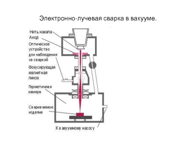 Слайд 15Электронно-лучевая сварка в вакууме.