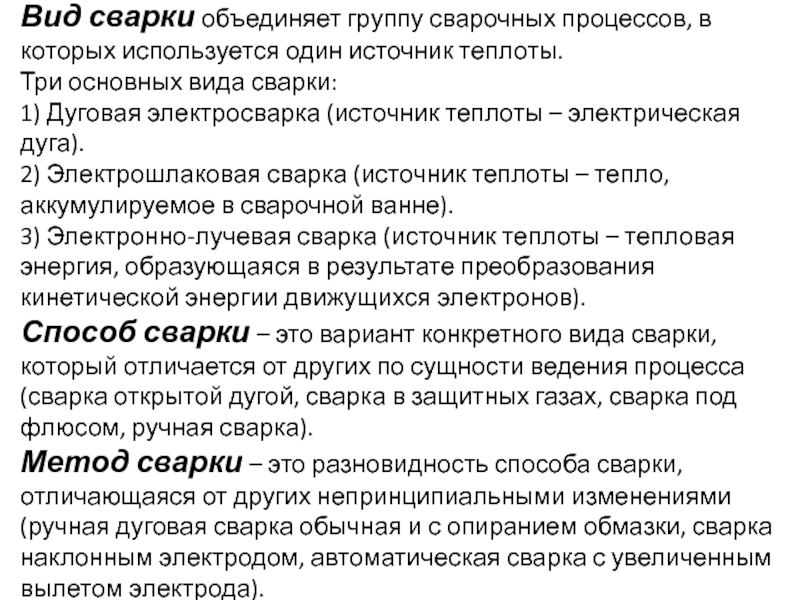 Слайд 3Вид сварки объединяет группу сварочных процессов, в которых используется один