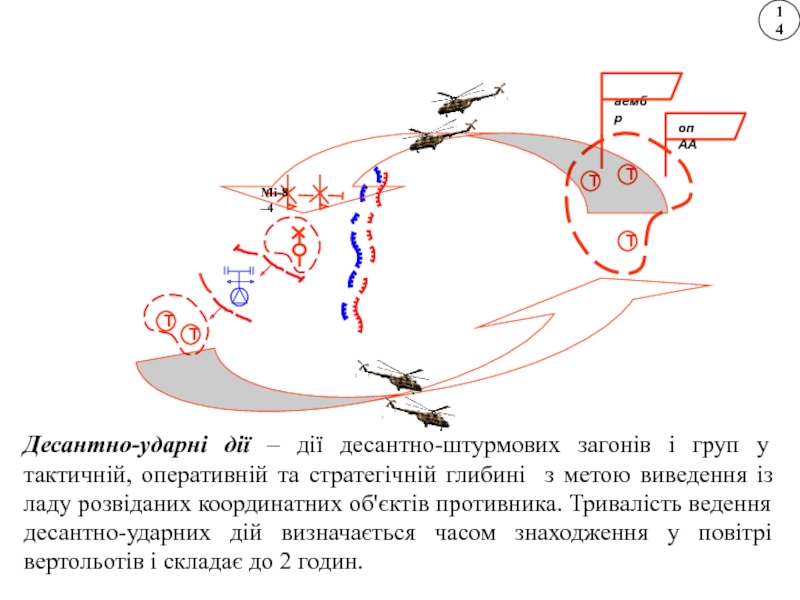 розвіданих координатних об'єктів противника. Тривалість ведення десантно-ударних дій визначається часом знаходження у повітрі вертольотів і складає до 2 годин.