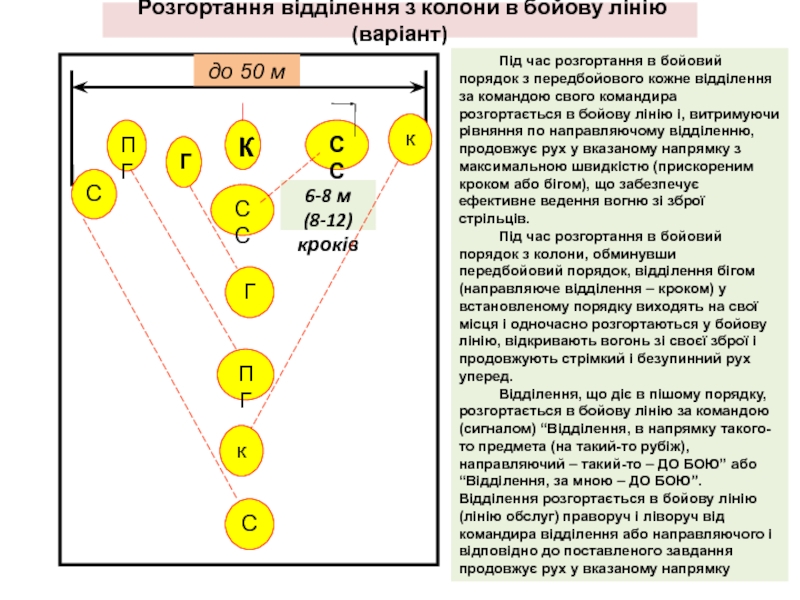Слайд 12 Розгортання відділення з колони в бойову лінію (варіант)